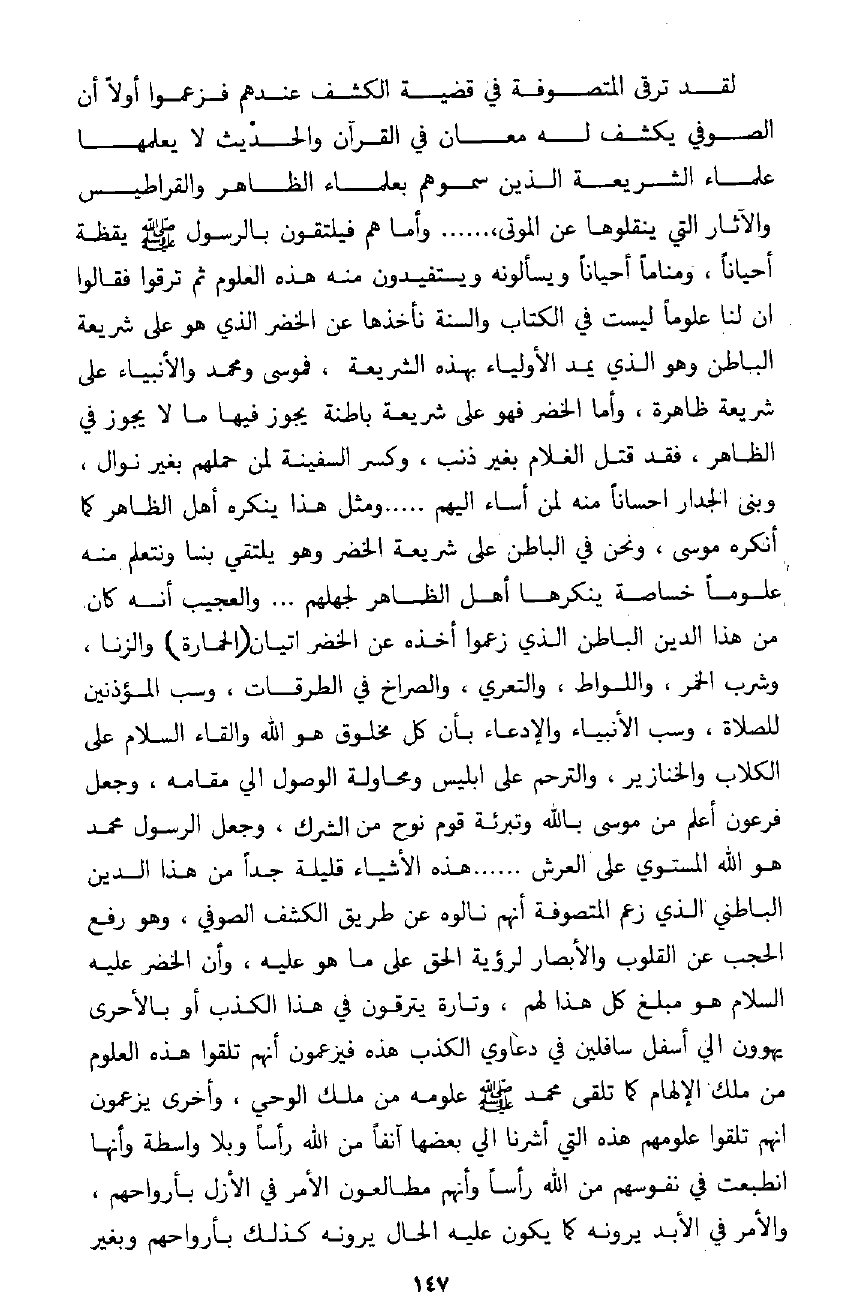 والمهم هنا التنبيه على أن الخضر الصوفي يختلف تمامًا عن الخضر الذي ذكره الله في القرآن وقص علينا النبي ـ صلى الله عليه وسلم ـ قصته. فذاك نبي عبد موحد مؤمن على علم من علم الله بالوحي عاش ومات لوقته وزمانه وفعل ما فعل موافقًا للحق والشريعة أما الخضر الصوفي فهو ما رأينا مصدرًا للخرافة والجهل والشرك ولذلك أخبر الإمام ابن تيمية بأن الخضر المزعوم هذا لا حقيقة له شأنه في ذلك