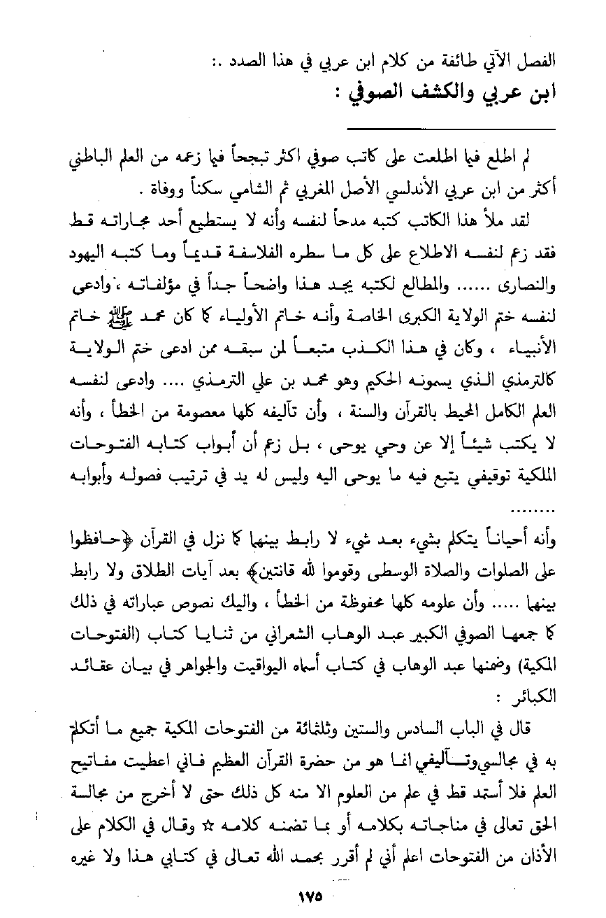 " وأما النصارى فإنهم أقرب من جميع الأمم الماضية إلى الحق تعالى، فهم دون المحمديين، سببه أنهم طلبوا الله تعالى فعبدوه في عيسى ومريم وروح القدس، ثم قالوا بعدم التجزئة، ثم قالوا بمقدمه على وجوده في محدث عيسى وكل هذا تنزيه في تشبيه لائق بالجناب الإلهي ".