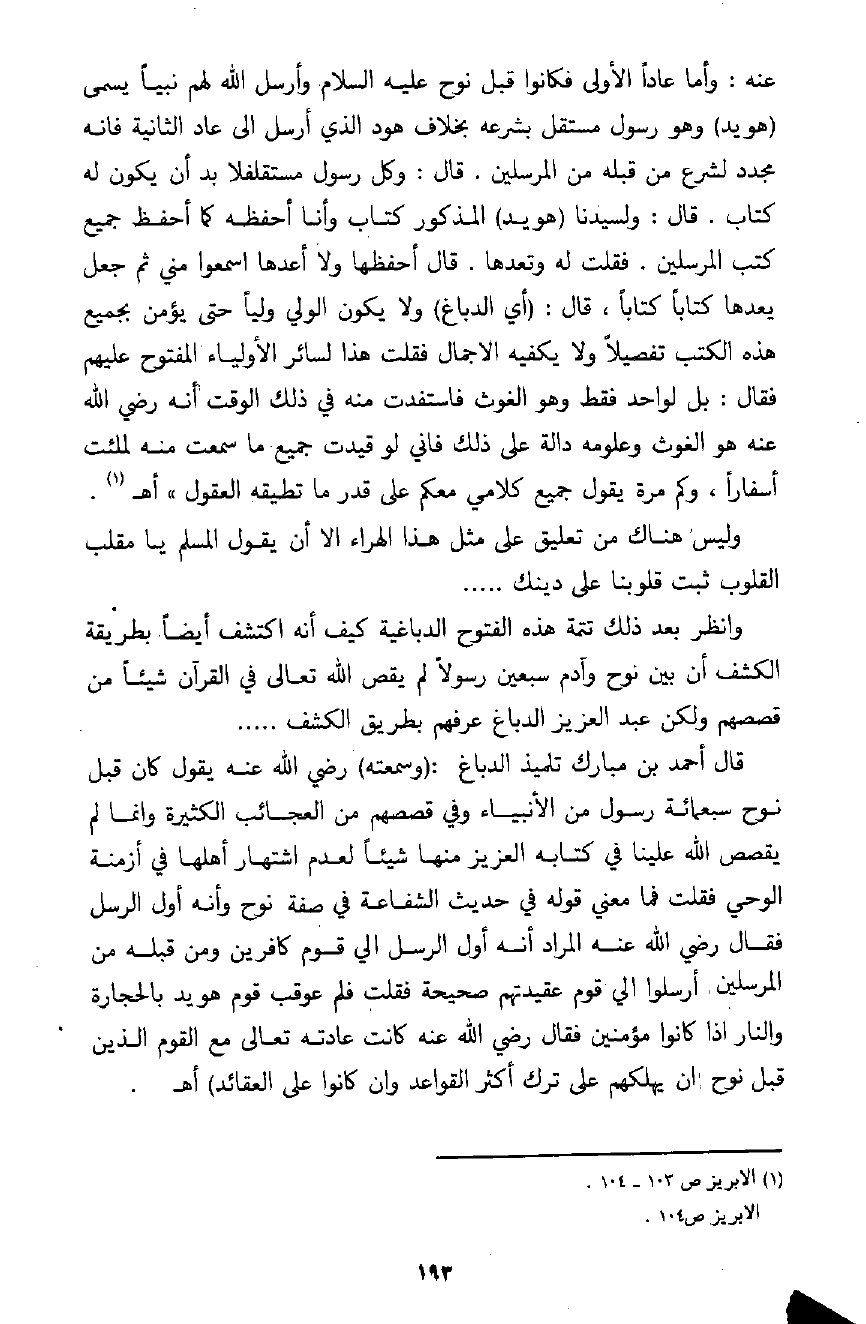 يقول عبد الوهاب الشعراني أيضًا في كتابه اليواقيت فيما ينقله عن ابن عربي: