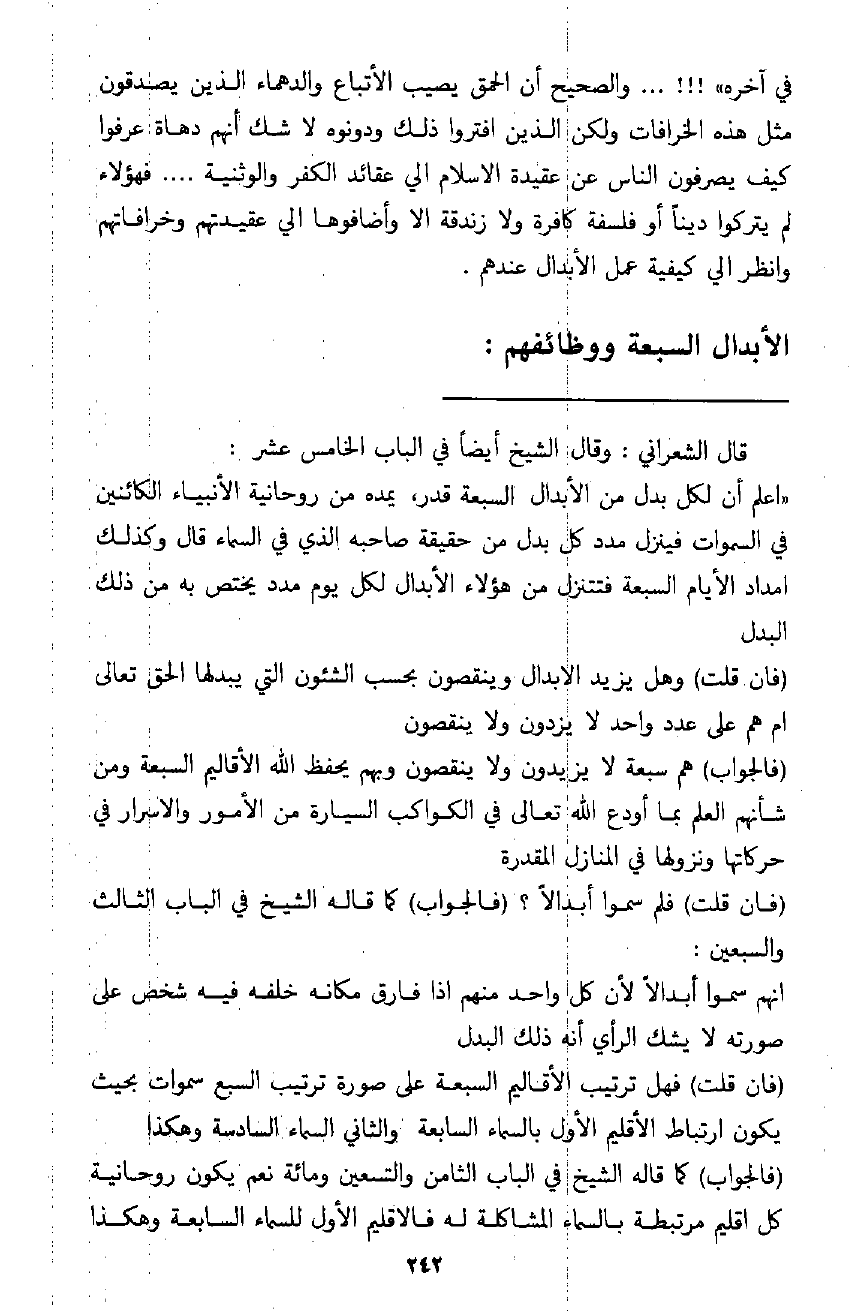 ويستطرد أيضًا مبينًا أن القطب الأكبر أو ما يسمونه بالغوث واحد في كل زمان. فيقول: