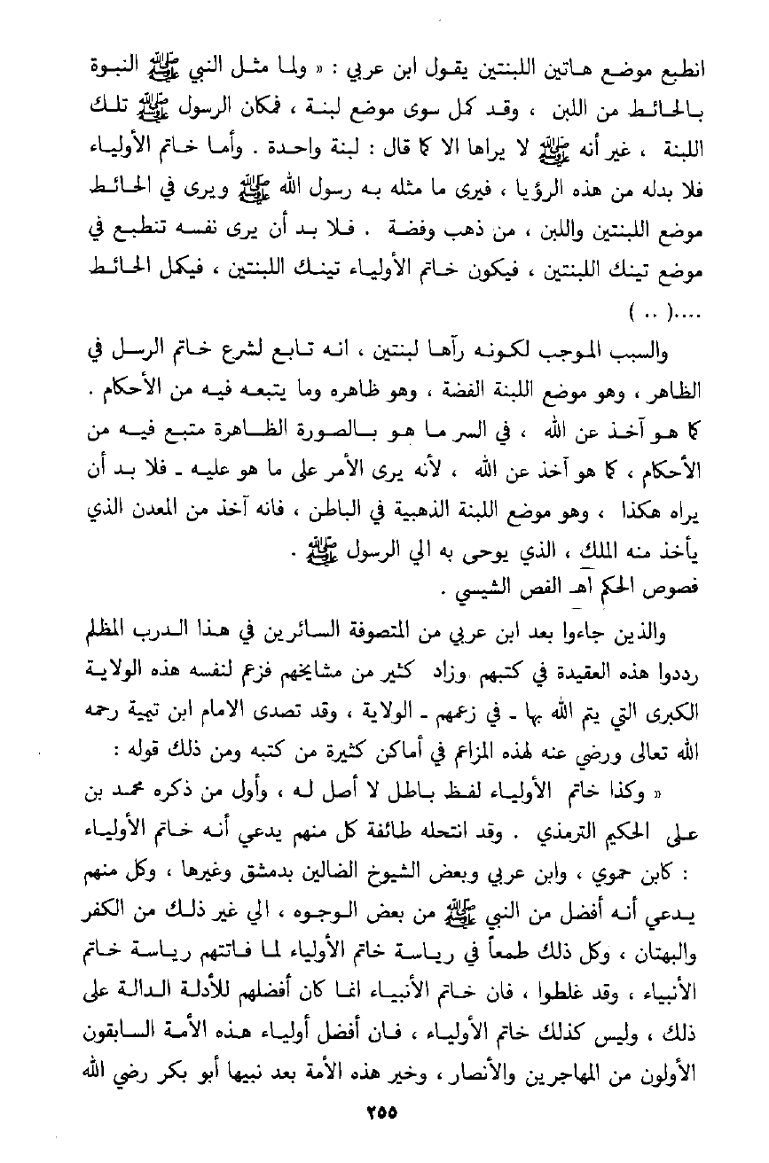 فانظروا أين يضع ابن عربي نفسه، إنه يضعها في القمة العليا التي لا تدانيها قمة، ويدعي كذبًا مع ذلك أنه نال ذلك باختصاص إلهي حتى لا يطالبه أحد بمسوغات هذا الاختيار ومؤهلاته.