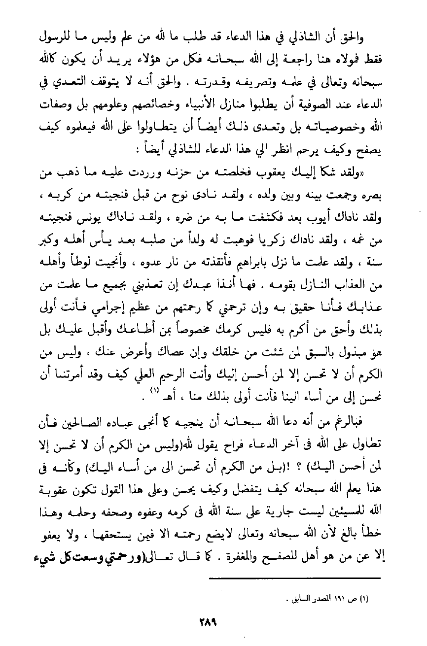 ثم يقول السلجماسي: " وسمعته ـ رضي الله عنه ـ يقول إن الصغير من الأولياء يحضر بذاته وأما الكبير فلا تحجير عليه يشير ـ رضي الله عنه ـ إلى أن الصغير إذا حضر غاب عن محله وداره فلا يوجد في بلدته أصلًا لأنه يذهب إليه بذاته. وأما الكبير فإنه يدبر وعلى رأسه فيحضر ولا يغيب عن داره لأن الكبير يقدر على التطور على ما شاء من الصور لكمال روحه تدبر له إن شاء ثلاثمائة وست وستون ذاتًا بل سمعت الشيخ ـ رضي الله عنه ـ مرة وأنا معه خارج باب الحبشة أحد أبواب فاس حرسها الله يقول: ايش هو: الديوان والأولياء الذين يقيمونه كلهم في صدري وسمعته مرة يقول إنما يقام الديوان في صدري " (الإبريز ص167) .