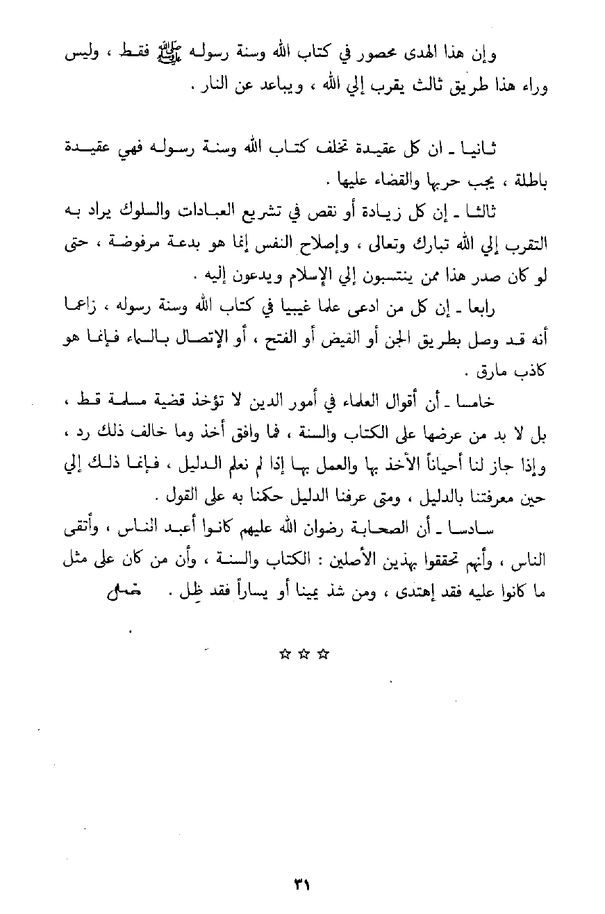 18 ـ وأرجو أن أكون بهذه المقدمة قد أوضحت جانبًا من هذه القضية: قضية الالتزام بالكتاب والسنة عقيدة وعبادة، وسلوكًا وآدابًا بالمشروع فقط.