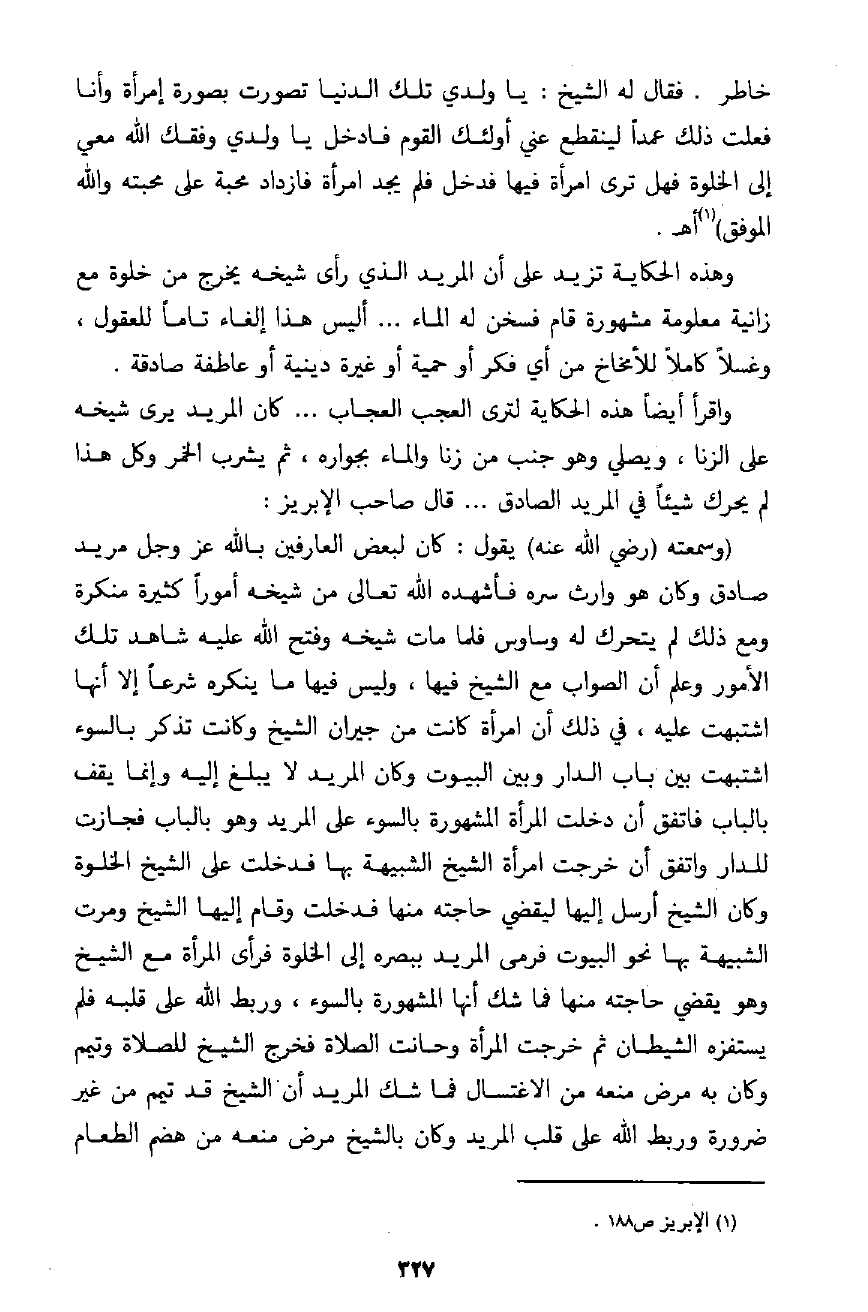 فاعلم أخي المسلم أن هذا الشطح الذي يأتي مما يسمونه بالحال ما هو إلا وخز شيطاني وتحريك إبليسي، هذا عند الصادقين منهم، وأما الكاذبون فإنهم يفتعلون ما يفعلون لإيهام العامة والسذج بأنهم من أهل الأحوال ومن المشاهدين لما يسمونه بحضرة الجلال أو الجمال! ! وذلك كله من الرياء والنفاق وسوء الأخلاق. ومخالفته هدي سلفنا الصالح والخروج على مناهج الأنبياء. فنسأل الله لنا ولإخواننا المسلمين السلامة والعافية مما ابتلي به هؤلاء.