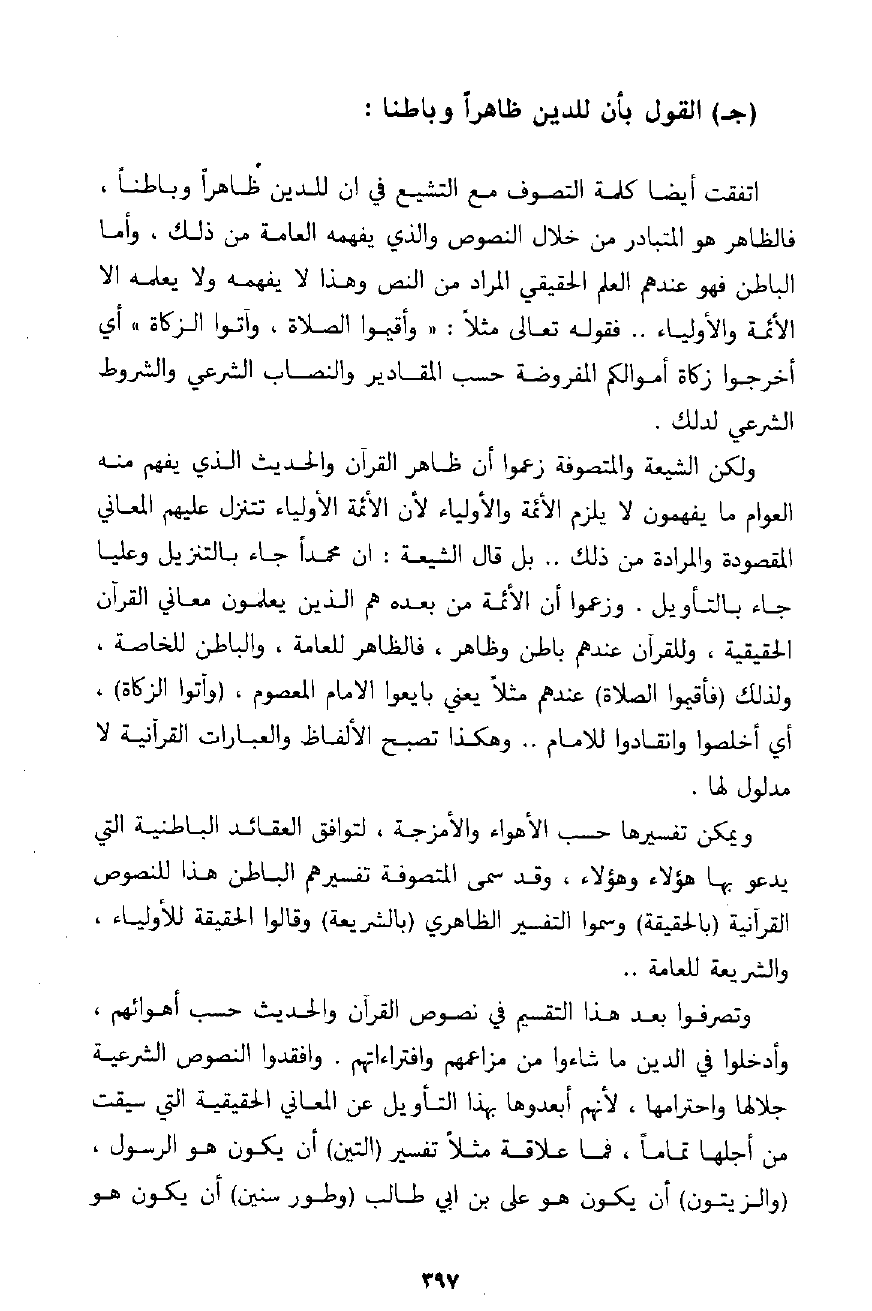 العارف الشيخ محيي الدين ابن عربي طيب الله ثراه (المجموعة النادرة ص26) . وزعم أن آل الرسول من أجزائه النورانية (المجموعة النادرة ص26) وبالتالي فهم أجزاء من الله حسب زعمه أن الرسول مخلوق من نور الله. . وقسم في هذه الرسالة الأولياء فجعل منهم المجاذيب وأهل الشطح والأميين. . وجعل نفسه في آخر هذه الكراسة أفضل الأولياء في زمنه على الإطلاق حيث يقول عن نفسه: " الاختصاص رحمة من الله تعالى للعبد لا بسعي ولا بعمل ولا برأي، ولا بِجَعْلٍ يختص الله برحمته من يشاء والله ذو الفضل العظيم: هو عطاء رباني، ومنح صمداني، وفضل أسبغ في القدم، قبل أن تتعين النسم، والعناية قسم، فأهل الاختصاص جذبتهم يد المشيئة الربانية، بمحض الفضل والعناية الصمدانية، إلى أقصى المراتب العلية وهذا المنح الباهر، والفضل الوافر، هو اليوم حصتي، ومنصته منصتي، أقامني الله في هذه المنزلة إمامًا، واختارني لرتبة هذه الخصوصية ختامًا، وكشف لي مخبآت الغيب باطلاع من كرمه، وجليل نعمه، ففهمت أسرار الرموز الفرقانية وسبرت خفايا دقائق البطون القرآنية، ولم تبرح تترقى همتي بكشف تلك الحجب اللطيفة، وبشق ديباجات هاتيك المحاضر الشريفة، فأنا اليوم ولربي الحمد والشكر، وله الإحسان والبر، كنز الفيوضات الطاهرة المحمدية، وسجل العلوم المقدسة النبوية، وهذه النوبة نوبتي، تتقلب في وراث منزلتي، وخدام قدمي إلى ما شاء الله، بهذا بشرت من صاحب الوعد الصادق، وقرأته في صحف الرموزات العلوية التي طفحت بدقائق الحقائق، سينشر علم ظهور حالي بعد هذا الخفاء في الأكوان ويبرز بروز الشمس من بطن ليل الطمس للعيان، وتعكف على بابي القلوب والأرواح، ويسري سر إرشادي في الجبال والأودية والبطاح ولم يمس شأن نهجي المبارك غبار دنيوي، ولم يرجع منه حرف إلى قصد نفساني بل كله لله " (المجموعة النادرة ص37) ا. هـ. .