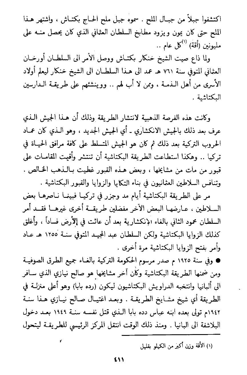 وحكى ذلك الشيخ أنه كان مرة عند بعض أمراء التتر بالمشرق، وكان له صنم يعبده، قال: فقال: هذا الصنم يأكل من هذا الطعام كل يوم ويبقى أثر الأكل في الطعام بينًا يرى فيه! ! فأنكرت ذلك، فقال لي إن كان يأكل أنت تموت؟ فقلت نعم، قال: فأقمت عنده إلى نصف النهار ولم يظهر في الطعام أثر! فاستعظم ذلك التتري وأقسم بأيمان مغلظة أنه كل يوم يرى فيه أثر الأكل، لكن اليوم بحضورك لم يظهر ذلك. فقلت لهذا الشيخ: أنا أبين لك سبب ذلك. ذلك التتري كافر مشرك، ولصنمه شيطان يغويه بما يظهره من الأثر في الطعام، وأنت كان معك من نور الإسلام وتأييد الله تعالى ما أوجب انصراف الشيطان عن أن يفعل ذلك بحضورك، وأنت وأمثالك بالنسبة إلى أهل الإسلام الخالص كالتتري بالنسبة لأمثالك. فالتتري وأمثاله سود، وأهل الإسلام المحض بيض، وأنتم بلق فيكم سواد وبياض. فأعجب هذا المثل من كان حاضرًا! ! !