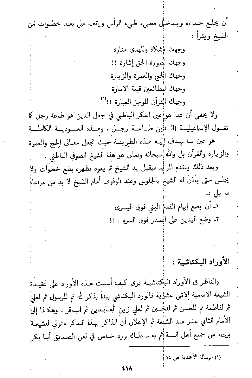 قلت للأمير: أنا ما امتحنت هؤلاء، لكن هم يزعمون أن لهم أحوالًا يدخلون بها النار، وأن أهل الشريعة لا يقدرون على ذلك، ويقولون لنا: هذه الأحوال التي يعجز عنها أهل الشرع ليس لهم أن يعترضوا علينا، بل يسلم إلينا ما نحن عليه ـ سواء وافق الشرع أو خالفه ـ وأنا قد استخرت الله سبحانه أنهم إن دخلوا النار أدخل أنا وهم ومن احترق منا ومنهم فعليه لعنة الله، وكان مغلوبًا، وذلك بعد أن نغسل جسومنا بالخل والماء الحار.