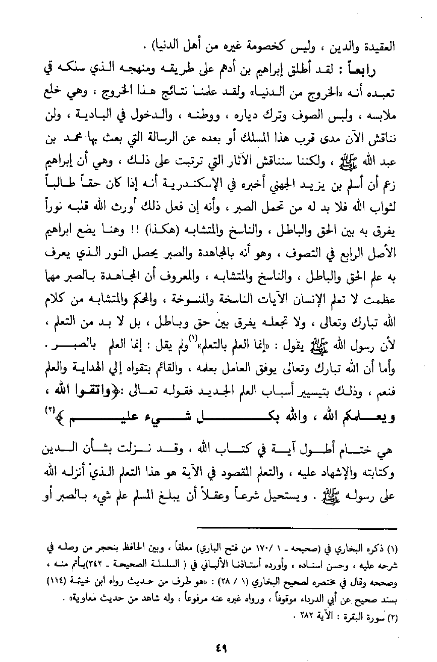 يا غلام احفظ عني واعقل، واحتمل ولا تعجل، فإن التأني معه الحلم والحياء، وإن السفه معه الخرق والشؤم، قال: فسالت عيناي، وقلت: والله ما حملني على مفارقة أبوي، والخروج من مالي، إلا حب الأثرة لله، ومع ذلك الزهد في الدنيا، والرغبة في جوار الله تعالى.