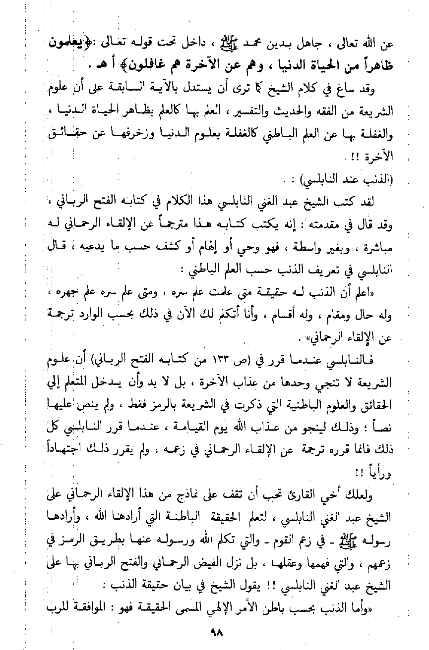 ويدخل الحلاج مسجد بغداد، ويرى الجنيد يتكلم على المنبر والجنيد سيد الطائفة في وقته فيقول له: يا أبا القاسم إن الله لا يرضى من العالم بالعلم حتى يجده في العلم، فإن كنت في العلم فالزم مكانك، وإلا فانزل، فنزل الجنيد ولم يتكلم على الناس شهرًا (أخبار الحلاج طبع ماسنيون) .