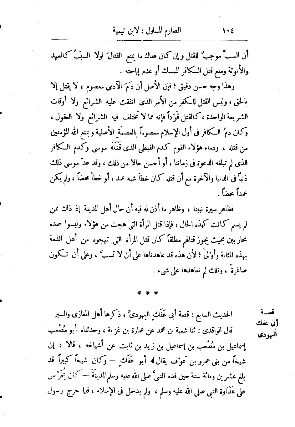 الحديث السابع: قصة أبي عفك اليهودي ذكرها أهل المغازي والسير.