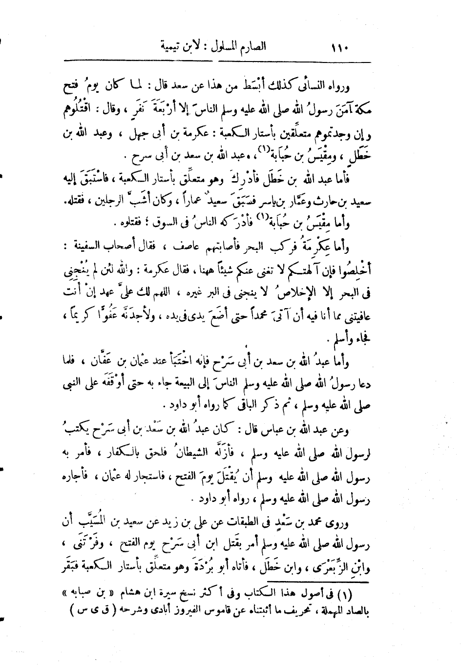 وراوه النسائي كذلك بأبسط من هذا عن سعد قال: لما كان يوم فتح مكة آمن رسول الله صلى الله عليه وسلم إلا أربعة نفر وقال: اقتلوهم وإن وجدتموهم متعلقين بأستار الكعبة: عكرمة بن أبي جهل وعبد الله بن خطل ومقيس بن حبابة وعبد الله بن سعد بن أبي سرح.