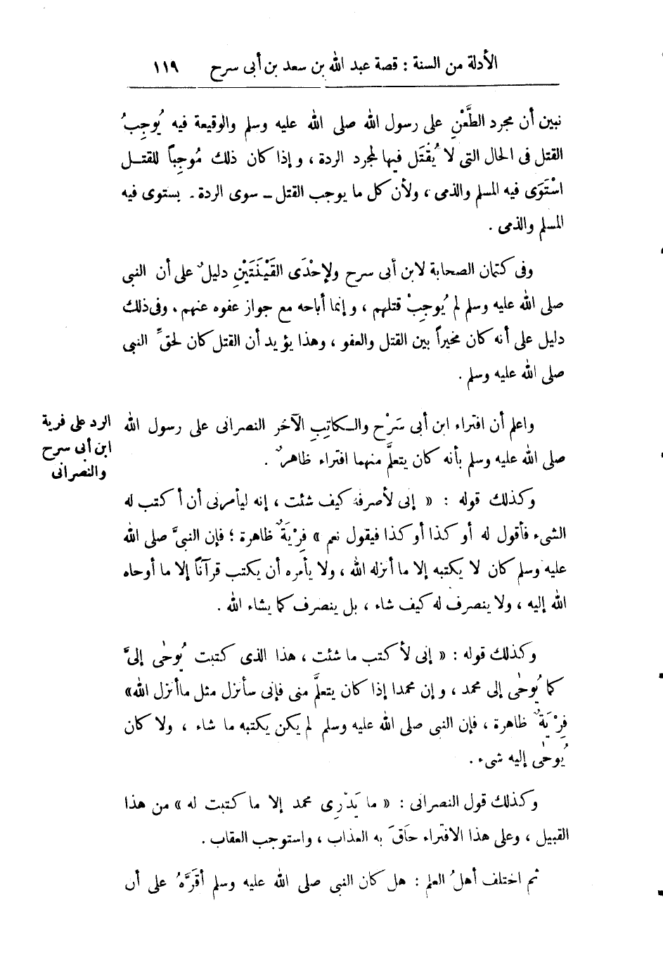 وكذلك قوله: "إني لأصرفه كيف شئت إنه ليأمرني أن أكتب له الشيء فأقول له أو كذا أو كذا فيقول نعم" فرية ظاهرة فإن النبي صلى الله عليه وسلم كان لا يكتبه إلا ما أنزله الله ولا يأمره أن يكتب قرآنا إلا ما أوحاه الله إليه ولا ينصرف له كيف شاء بل ينصرف كما يشاء الله.