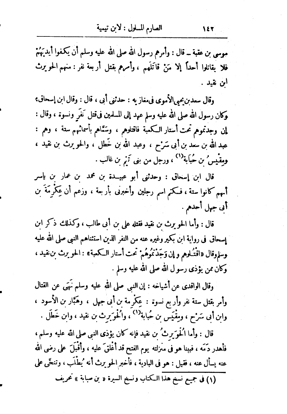 موسى بن عقبة قال: وأمرهم رسول الله صلى الله عليه وسلم أن يكفوا أيديهم فلا يقاتلوا أحد إلا من قاتلهم وأمرهم بقتل أربعة نفر: منهم الحويرث بن نقيد.