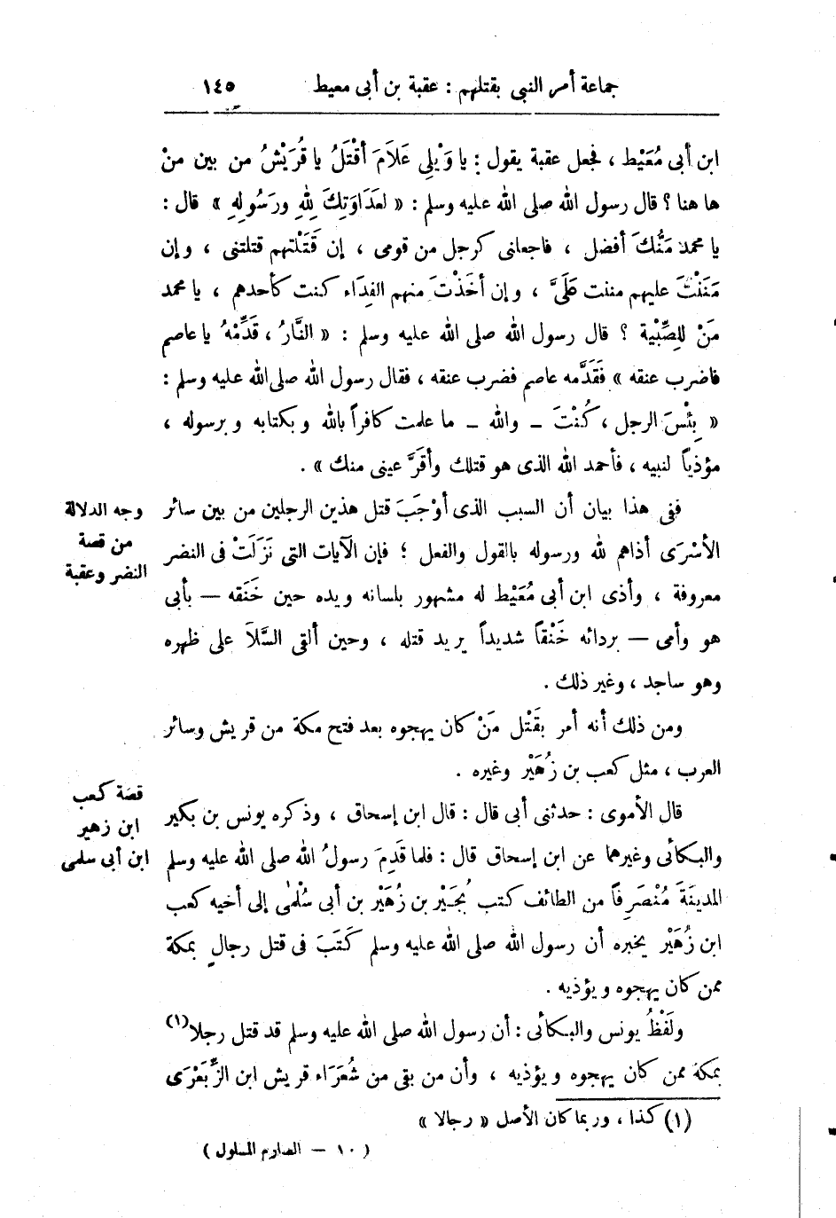 ففي هذا بيان أن السبب الذي أوجب قتل هذين الرجلين من بين سائر الأسرى أذاهم لله ورسوله بالقول والفعل فإن الآيات التي نزلت في النضر معروفة وأذى ابن أبي معيط له مشهور بلسانه ويده حين خنقه بأبي هو وأمي بردائه خنقا شديدا يريد قتله وحين ألقى السلا على ظهره وهو ساجد وغير ذلك.