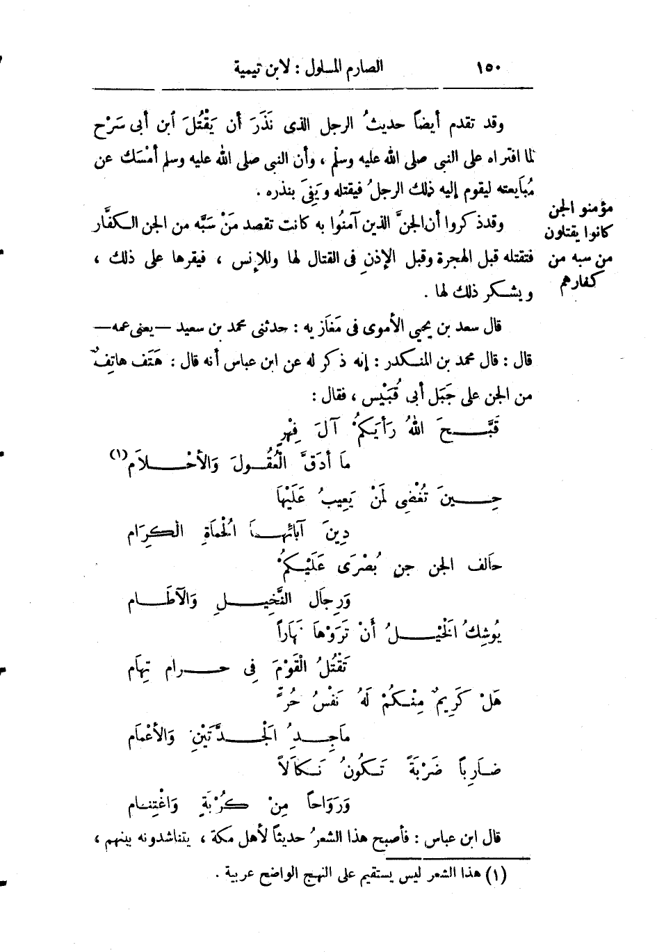 وقد ذكروا أن الجن الذي آمنوا به كانت تقصد من سبه من الجن الكفار فتقتله قبل الهجرة وقبل الإذن في القتال له وللإنس فيقرها على ذلك ويشكر ذلك لها.