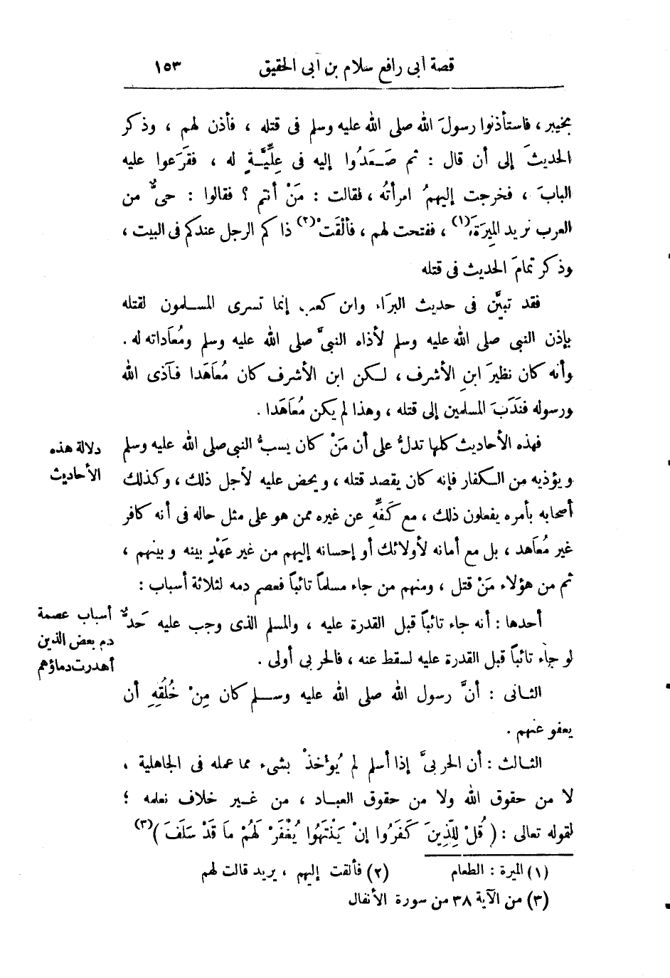 فقد تبين في حديث البراء وابن كعب إنما تسرى المسلمين بقتله بإذن النبي صلى الله عليه وسلم لأذاه للنبي ومعاداته له وأنه كان نضير ابن الأشرف لكن ابن الأشرف كان معاهدا فآذى الله ورسوله فندب المسلمين إلى قتله وهذا لم يكن معاهدا.