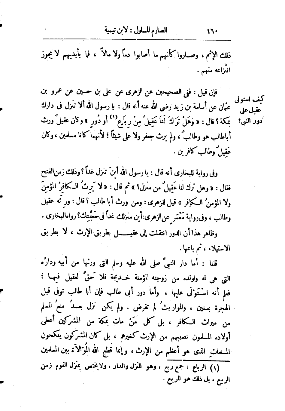 وظاهر هذا أن الدور انتقلت إلى عقيل بطريق الإرث لا بطريق الاستيلاء ثم باعها.