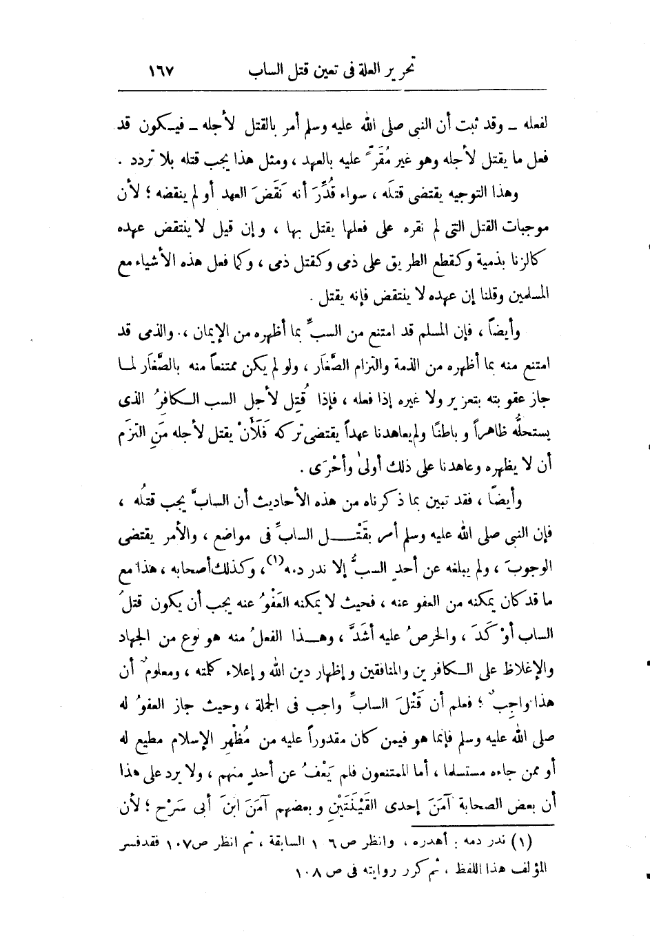 وأيضا فقد تبين بما ذكرناه من هذه الأحاديث أن الساب يجب قتله فإن النبي صلى الله عليه وسلم أمر بقتل الساب في مواضع والأمر يقضي الوجوب ولم يبلغه عن أحد السب إلا ندر دمه وكذلك أصحابه هذا مع ما قد كان يمكنه من العفو عنه فحيث لا يمكنه العفو عنه يجب أن يكون قتل الساب أوكد والحرص عليه أشد وهذا الفعل منه هو نوع من الجهاد والإغلاظ على الكافرين والمنافقين وإظهار دين الله وإعلاء كلمته ومعلوم أن هذا واجب فعلم أن قتل الساب واجب في الجملة وحيث جاز العفو له صلى الله عليه وسلم فإنما هو فيمن كان مقدورا عليه من مظهر الإسلام مطيع له أو ممن جاءه مستسلما أما الممتنعون فلم يعف عن أحد منهم ولا يرد على هذا أن بعض الصحابة آمن إحدى القينتين وبعضهم آمن ابن أبي سرح لأن