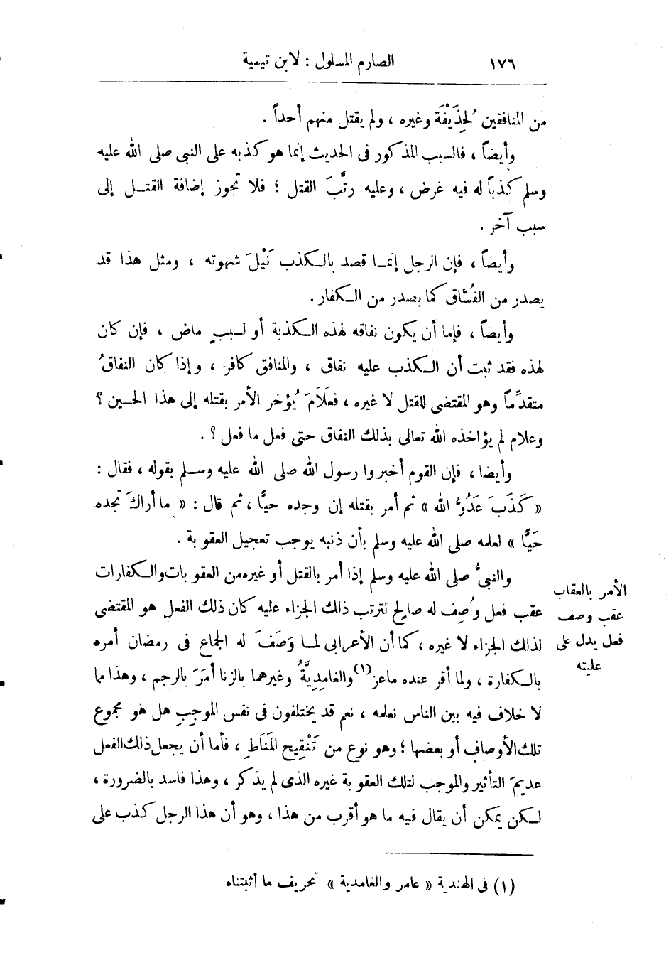 والنبي صلى الله عليه وسلم إذا أمر بالقتل أو غيره من العقوبات والكفارات عقب فعل وصف له صالح لترتب ذلك الجزاء عليه كان ذلك الفعل هو المقتضي لذلك الجزاء ولا غيره كما أن الأعرابي لما وصف له الجماع في رمضان أمره بالكفارة ولما أقر عنده ماعز والغامدية وغيرهما بالزنا أمر بالرجم وهذا مما لا خلاف فيه بين الناس نعلمه نعم قد يختلفون في نفس الموجب هل هو مجموع تلك الأوصاف أو بعضها وهو نوع من تنقيح المناط فأما أن يجعل ذلك الفعل عديم التأثير والموجب لتلك العقوبة غيره الذي لم يذكر وهذا فاسد بالضرورة لكن يمكن أن يقال فيه ما هو أقرب من هذا وهو أن هذا الرجل كذب على