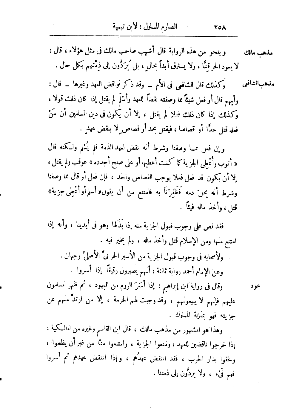 وإن فعل مما وصفنا وشرط أنه نقض لعهد الذمة فلم يسلم ولكنه قال: "أتوب وأعطي الجزية كما كنت أعطيها أو على صلح أجدده" عوقب ولم يقتل إلا أن يكون قد فعل فعلا يوجب القصاص أو الحد فإن فعل أو قال مما وصفنا وشرط أنه يحل دمه فظفرنا به فامتنع من أن يقول: "أسلم أو أعطي جزية" قتل وأخذ ماله فيئا.