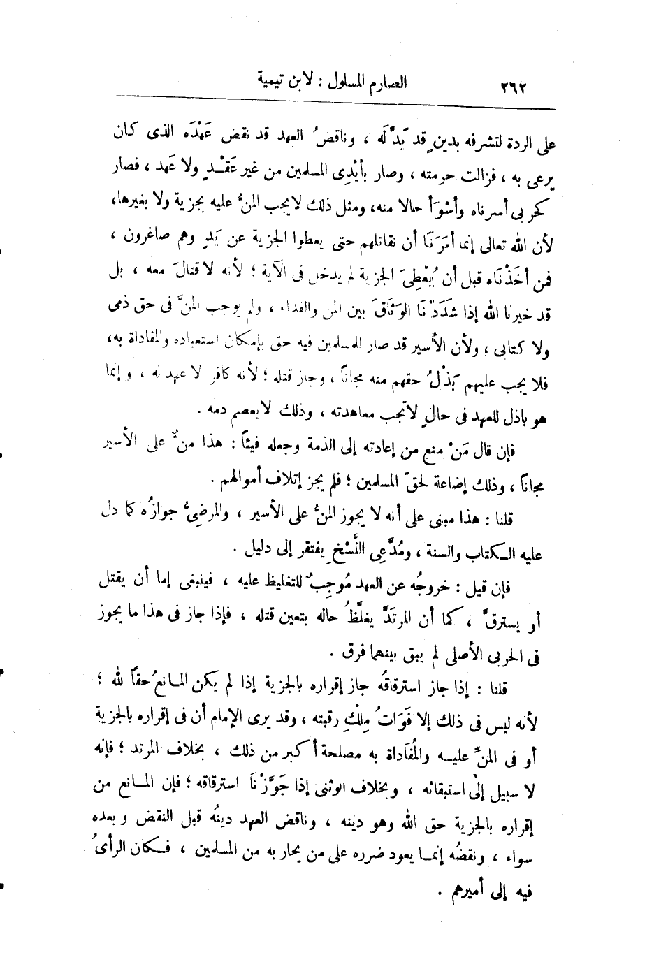 على الردة لا لتشرفه بدين قد بدله وناقض العهد قد نقض عهده الذي كان يرعى به فزالت حرمته وصار بأيدي المسلمين من غير عقد ولا عهد فصار كحربي أسرناه وأسوء حالا منه ومثل ذلك لا يجب المن عليه بجزية ولا بغيرها لأن الله تعالى إنما أمرنا أن نقاتلهم حتى يعطوا الجزية عن يد وهم صاغرون فمن أخذناه قبل أن يعطي الجزية لم يدخل في الآية لأنه لا قتال معه بل قد خيرنا الله إذا شددنا الوثاق بين المن والفداء ولم يوجب المن في حق ذمي ولا كتابي ولأن الأسير قد صار للمسلمين فيه حق بإمكان استبعاده والمفاداة به فلا يجب عليهم بذل حقهم منه مجانا وجاز قتله لأنه كافر لا عهد له وإنما هو باذل للعهد في حال لا تجب معاهدته وذلك لا يعصم دمه.