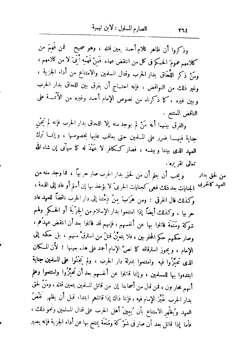 وذكروا أن ظاهر كلام أحمد يعين قتله وهو صحيح ممن فهم من كلامهم عموم الحكم في كل من انتقض عهده فمن فهمه أتي لا من كلامهم ومن ذكر اللحاق بدار الحرب وقتال المسلمين والامتناع من أداء الجزية وغير ذلك في النواقض فإنه احتاج أن يفرق بين اللحاق بدار الحرب وبين غيره كما ذكرناه من نصوص الإمام أحمد وغيره من الأئمة على الناقض الممتنع.