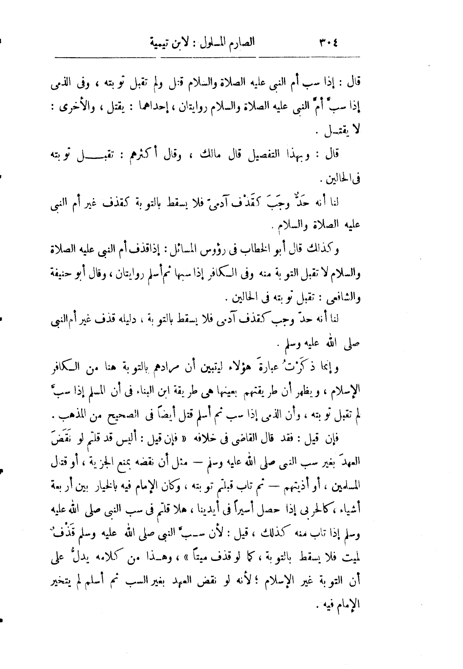 فإن قيل: فقد قال القاضي في خلافه "فإن قيل: أليس قد قلتم لو نقض العهد بغير سب النبي صلى الله عليه وسلم مثل أن نقضه بمنع الجزية أو قتال المسلمين أو أذيتهم ثم تاب قبلتم توبته وكان الإمام فيه بالخيار بين أربعة أشياء كالحربي إذا حصل أسيرا في أيدينا هلا قلتم في سب النبي صلى الله عليه وسلم إذا تاب منه كذلك قيل: لأن سب النبي صلى الله عليه وسلم قذف لميت فلا يسقط بالتوبة كما لو قذف ميتا" وهذا من كلامه يدل على أن التوبة غير الإسلام لأنه لو نقض العهد بغير السب ثم أسلم لم يتخير الإمام فيه.