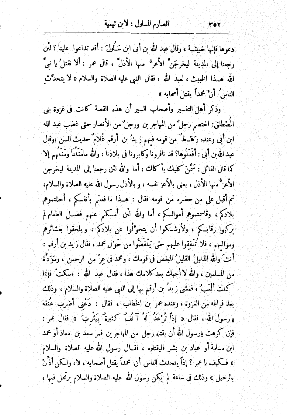 وذكر أهل التفسير وأصحاب السير أن هذه القصة كانت في غزوة بني المصطلق: اختصم رجل من المهاجرين ورجل من الأنصار حتى غضب عبد الله بن أبي وعنده رهط من قومه فيهم زيد بن أرقم غلام حديث السن وقال عبد الله بن أبي: أفعلوها؟ قد نافرونا وكابرونا في بلادنا والله ما مثلنا ومثلهم إلا كما قال القائل: سمن كلبك يأكلك أما والله لئن رجعنا إلى المدينة ليخرجن الأعز منها الأذل يعني بالأعز نفسه وبالأذل رسول الله صلى الله عليه وسلم ثم أقبل على من حضره من قومه فقال: هذا ما فعلتم بأنفسكم أحللتموهم بلادكم وقاسمتموهم أموالكم أما والله لئن أمسكتم عنهم فضل الطعام لم يركبوا رقابكم ولأوشكوا أن يتحولوا عن بلادكم ويلحقوا بعشائرهم ومواليهم فلا تنفقوا عليهم حتى ينفضوا من حول محمد فقال زيد بن ابن أرقم: أنت والله الذليل القليل المبغض في قومك ومحمد في عز من الرحمن ومودة من المسلمين والله لا أحبك بعد كلامك هذا فقال عبد الله: اسكت فإنما كنت ألعب فمشى زيد بن أرقم بها إلى النبي صلى الله عليه وسلم وذلك بعد فراغه من الغزوة وعنده عمر بن الخطاب فقال: دعني أضرب عنقه يا رسول الله فقال: "إذا ترعد له آنف كثيرة بيثرب" فقال عمر: فإن كرهت يا رسول الله أن يقتله رجل من المهاجرين فمر سعد بن معاذ أو محمد بن مسلمة أو عباد بن بشر فليقتلوه فقال رسول الله صلى الله عليه وسلم: "فكيف يا عمر؟ إذا تحدث الناس أن محمدا يقتل أصحابه لا ولكن أذن بالرحيل" وذلك في ساعة لم يكن رسول الله صلى الله عليه وسلم يرتحل فيها