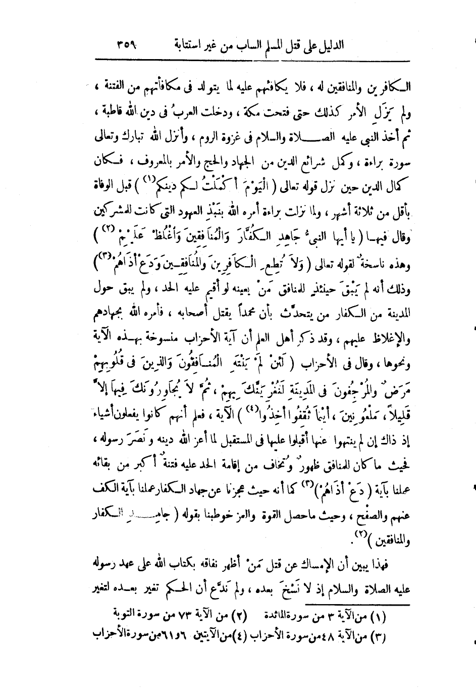 فهذا يبين أن الإمساك عن قتل من أظهر نفاقه بكتاب الله على عهد رسوله عليه الصلاة والسلام إذ لا نسخ بعده ولم ندع أن الحكم تغير بعده لتغير