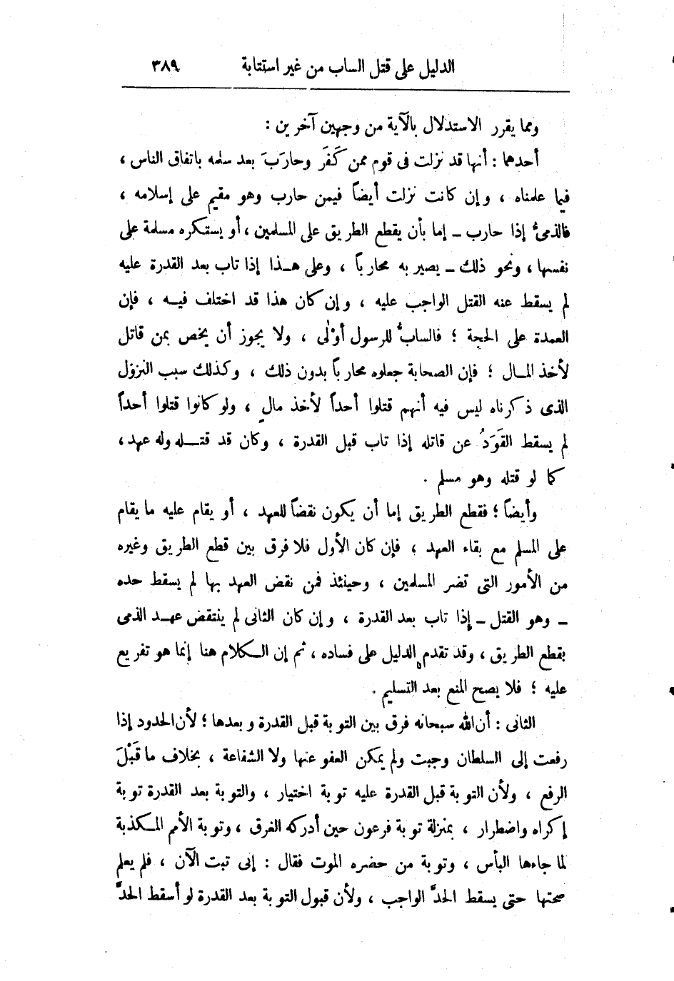 وأيضا فقطع الطرق إما أن يكون نقضا للعهد أو يقام عليه ما يقام على المسلم مع بقاء العهد فإن كان الأول فلا فرق بين قطع الطريق وغيره من الأمور التي تضر المسلمين وحينئذ فمن نقض العهد بها لم يسقط حده وهو القتل إذا تاب بعد القدرة وإن كان الثاني لم ينتقض عهد الذمي بقطع الطريق وقد تقدم الدليل على فساده ثم إن الكلام هنا إنما هو تفريع عليه فلا يصح المنع بعد التسليم.