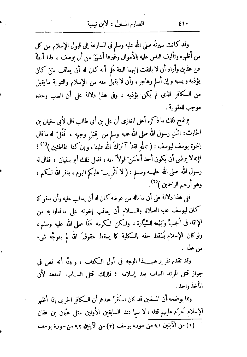 ففي هذا دلالة على أن ما ناله من عرضه كان له أن يعاقب عليه وأن يعفو كما كان ليوسف عليه الصلاة والسلام أن يعاقب إخوته على ما فعلوا به من الإلقاء في الجب وبيعه للسيارة ولكن لكرمه عفا صلى الله عليه وسلم ولو كان الإسلام يسقط حقه بالكلية كما يسقط حقوق الله لم يتوجه شيء من هذا.