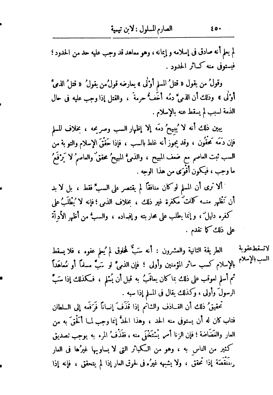 ألا ترى أن المسلم لو كان منافقا لم يقتصر على السب فقط بل لا بد أن تظهر منه كلمات مكفرة غير ذلك بخلاف الذمي فإنه لا يطلب على كفره دليل وإنما يطلب على محاربته وإفساده والسب من أظهر الأدلة على ذلك كما تقدم.