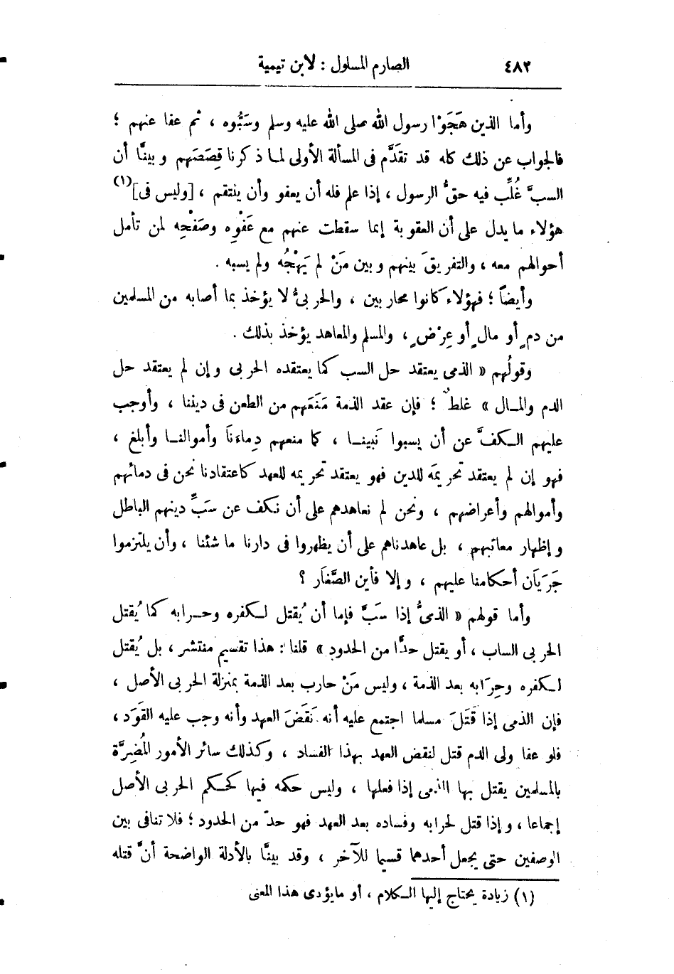 وقولهم: "الذمي يعتقد حل السب كما يعتقده الحربي وإن لم يعتقد حل الدم والمال" غلط فإن عقد الذمة منعهم من الطعن في ديننا وأوجب عليهم الكف عن أن يسبوا نبينا كما منعهم دماءنا وأموالنا وأبلغ فهو إن لم يعتقد تحريمه للدين فهو يعتقد تحريمه للعهد كاعتقادنا نحن في دمائهم وأموالهم وأعراضهم ونحن لم نعاهد على أن نكف عن سب دينهم الباطل وإظهار معايبهم بل عاهدناهم على أن يظهروا في دارنا ما شئنا وأن يلتزموا جريان أحكامنا عليهم وإلا فأين الصغار؟.