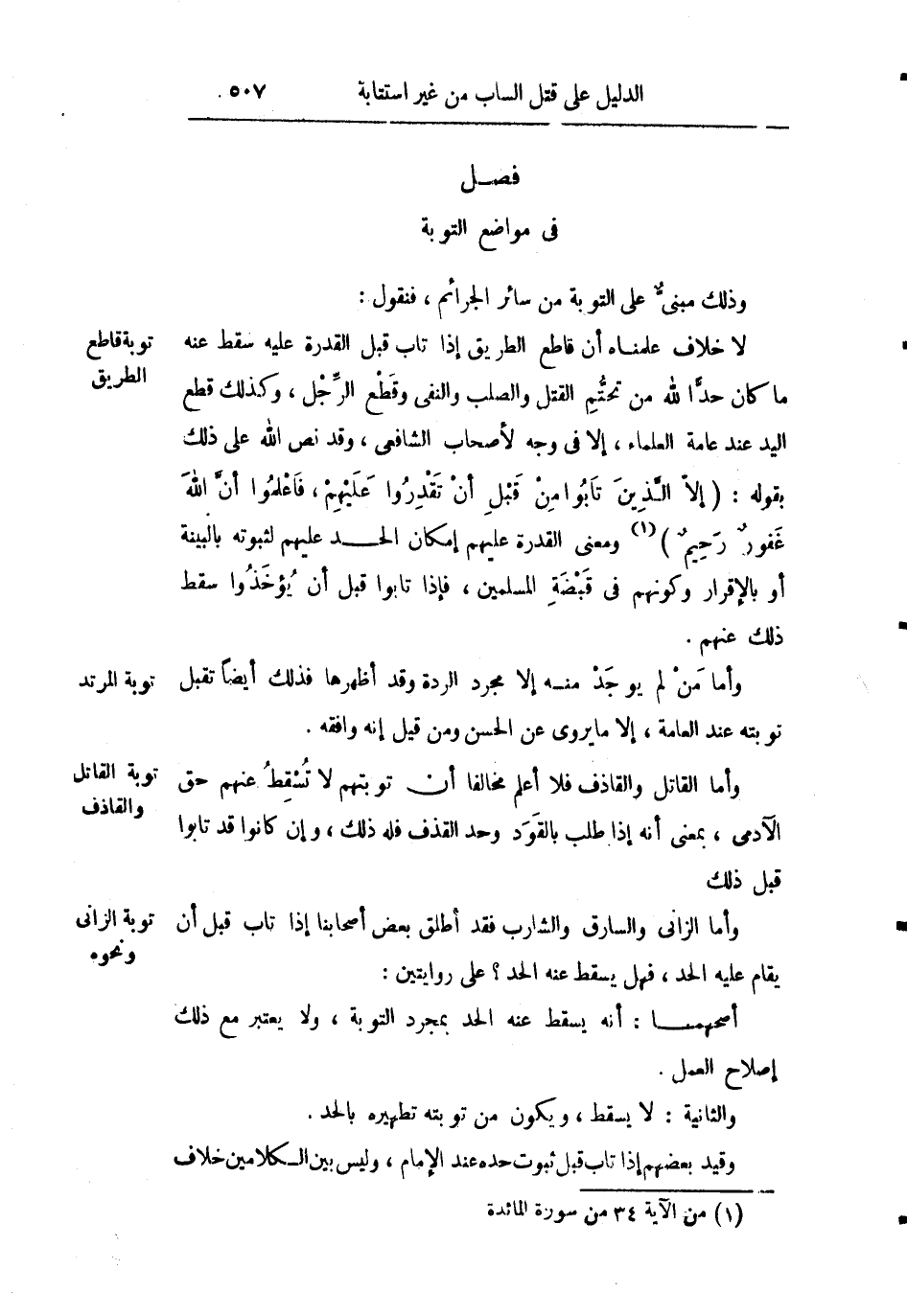 وذلك مبني على التوبة من سائر الجرائم فنقول: