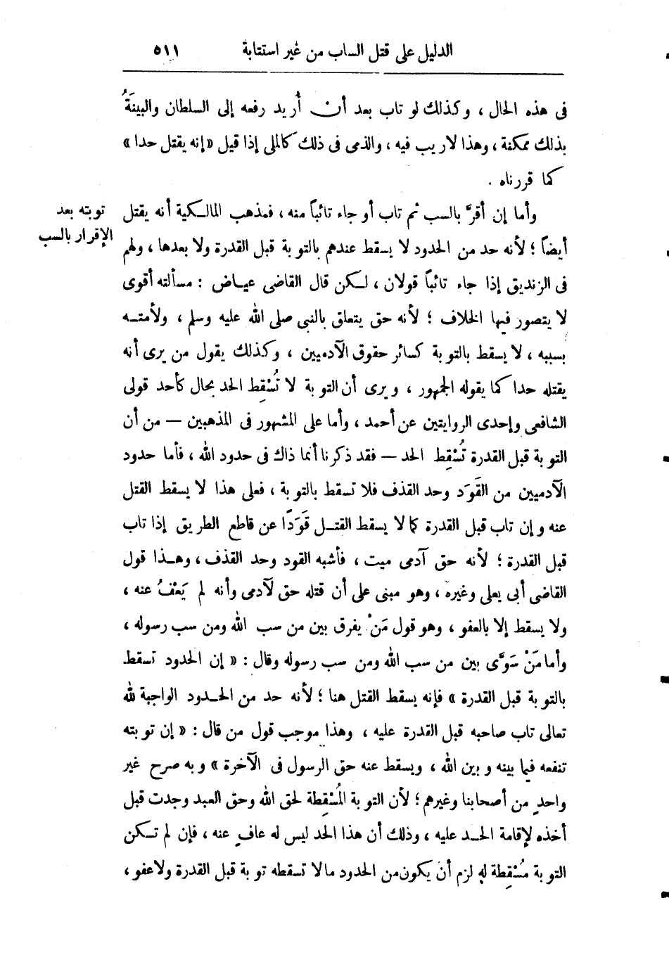 في هذه الحال وكذلك لو تاب بعد أن أريد رفعه إلى السلطان والبينة بذلك ممكنة وهذا لا ريب فيه والذمي في ذلك كالملي إذا قيل: "إنه يقتل حدا" كما قررناه.
