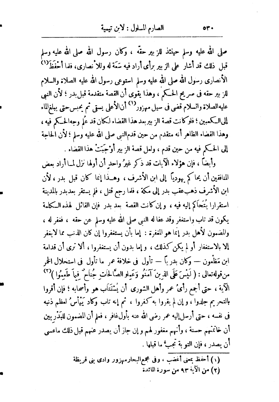 وأيضا فإن هؤلاء الآيات قد ذكر غير واحد أن أولها نزل لما أراد بعض المنافقين أن يحاكم يهوديا إلى ابن الأشرف وهذا إنما كان قبل بدر لأن ابن الأشرف ذهب عقب بدر إلى مكة فلما رجع قتل فلم يستقر بعد بدر بالمدينة استقرارا يتحاكم إليه وإن كانت القصة بعد بدر فإن القائل لهذه الكلمة يكون قد تاب واستغفر وقد عفا له النبي صلى الله عليه وسلم عن حقه فغفر له والمضمون لأهل بدر إنما هو المغفرة: إما بأن يستغفروا إن كان الذنب مما لا يغفر إلا بالاستغفار أو لم يكن كذلك وإما بدون أن يستغفروا ألا ترى أن قدامة بن مظعون وكان بدريا تأول في خلافة عمر ما تأول في استحلال الخمر من قوله تعالى: {لَيْسَ عَلَى الَّذِينَ آمَنُوا وَعَمِلُوا الصَّالِحَاتِ جُنَاحٌ فِيمَا طَعِمُوا} الآية حتى أجمع رأي عمر وأهل الشورى أن يستتاب هو أصحابه فإن أقروا بالتحريم جلدوا وإن لم يقروا به كفروا ثم إنه تاب وكاد ييأس لعظم ذنبه في نفسه حتى أرسل إليه عمر رضي الله عنه بأول سورة غافر فعلم أن المضمون للبدريين أن خاتمتهم حسنة وأنهم مغفور لهم وإن جاز أن يصدر عنهم قبل ذلك ما عسى أن يصدر فإن التوبة تجب ما قبلها.