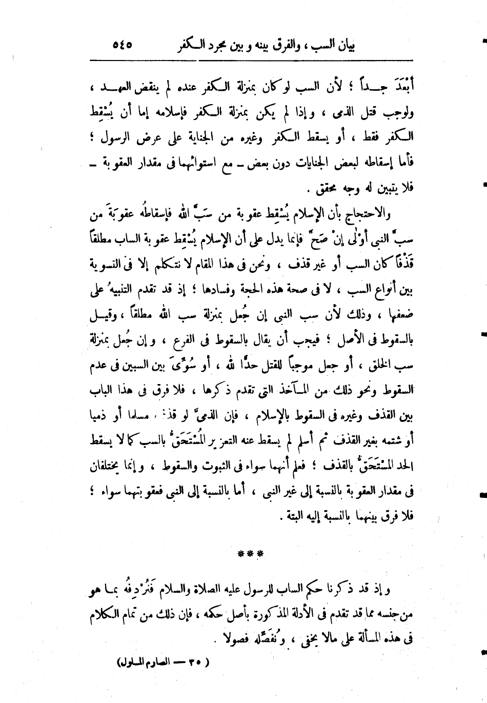 وإذ قد ذكرنا حكم الساب للرسول عليه الصلاة والسلام فنردفه بما هو من جنسه مما قد تقدم في الأدلة المذكورة بأصل حكمه فإن ذلك من تمام الكلام في هذه المسألة على ما لا يخفى ونفصله فصولا.