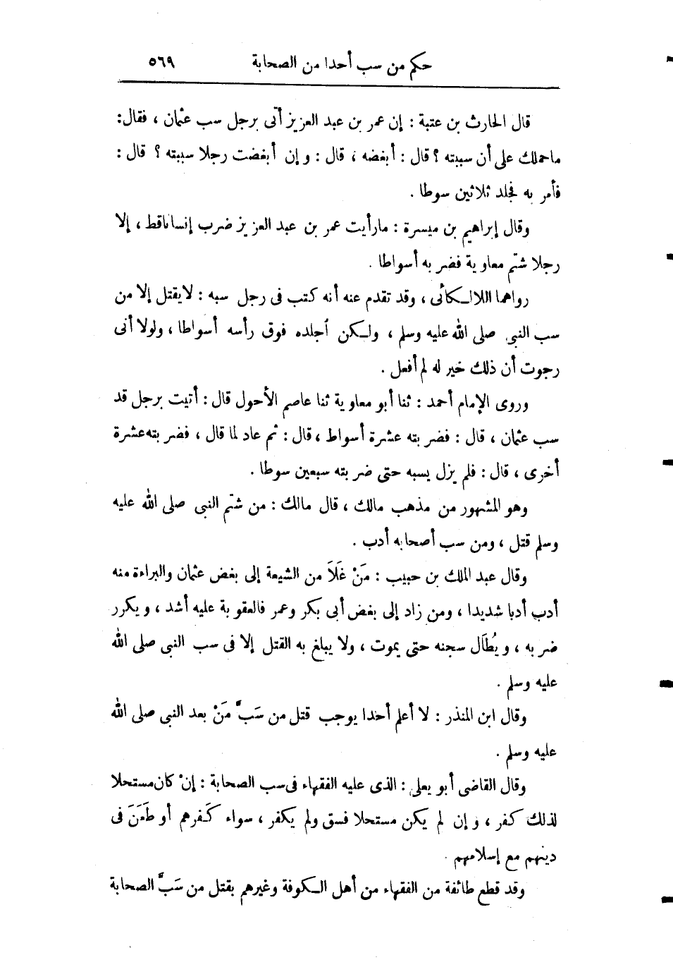 وقد قطع طائفة من الفقهاء من أهل الكوفة وغيرهم بقتل من سب الصحابة