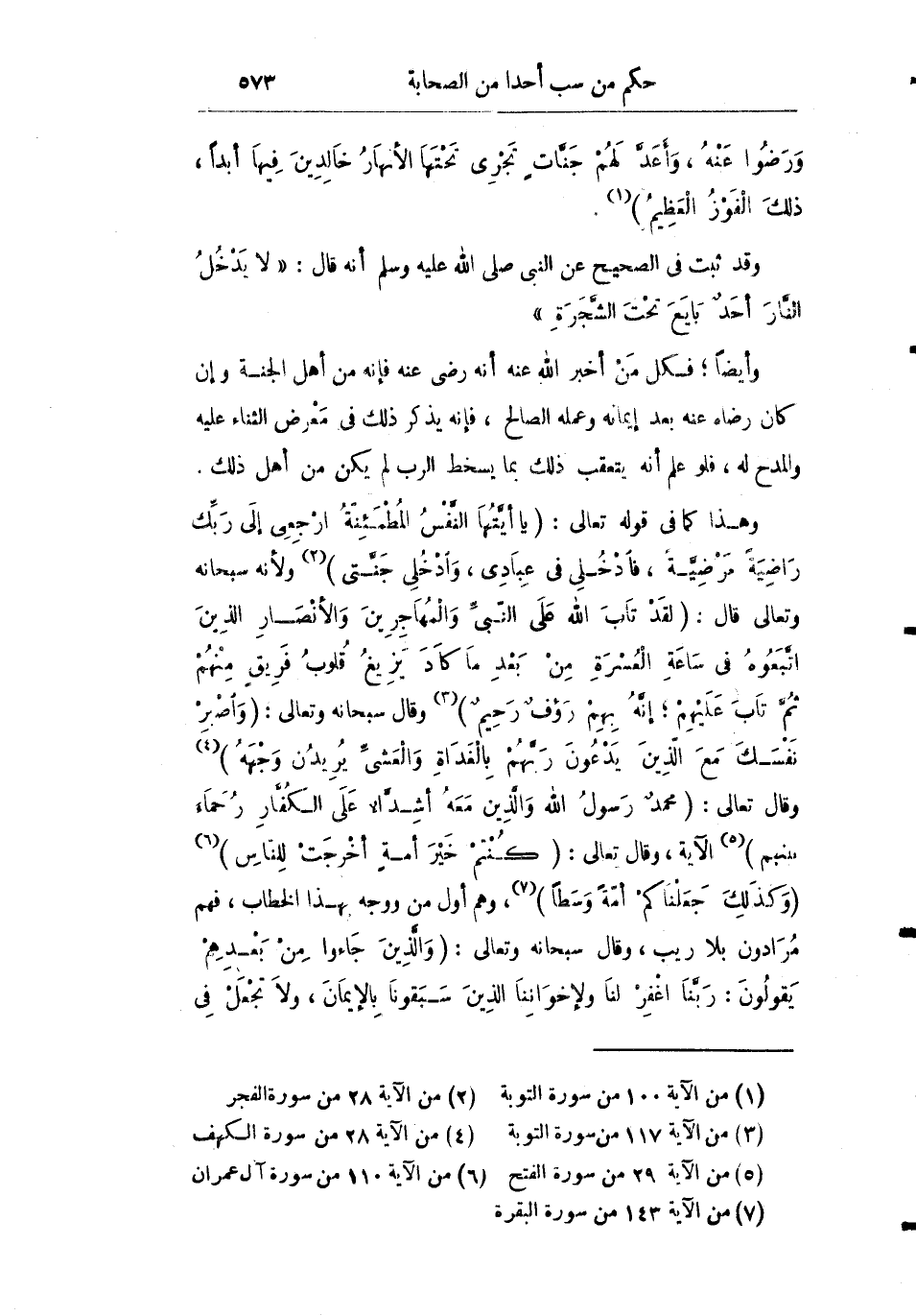 وهذا كما في قوله تعالى: {يَا أَيَّتُهَا النَّفْسُ الْمُطْمَئِنَّةُ ارْجِعِي إِلَى رَبِّكِ رَاضِيَةً مَرْضِيَّةً فَادْخُلِي فِي عِبَادِي وَادْخُلِي جَنَّتِي} ولأنه سبحانه وتعالى قال: {لَقَدْ تَابَ اللَّهُ عَلَى النَّبِيِّ وَالْمُهَاجِرِينَ وَالأَنْصَارِ الَّذِينَ اتَّبَعُوهُ فِي سَاعَةِ الْعُسْرَةِ مِنْ بَعْدِ مَا كَادَ يَزِيغُ قُلُوبُ فَرِيقٍ مِنْهُمْ ثُمَّ تَابَ عَلَيْهِمْ إِنَّهُ بِهِمْ رَؤُوفٌ رَحِيمٌ} وقال سبحانه وتعالى: {وَاصْبِرْ نَفْسَكَ مَعَ الَّذِينَ يَدْعُونَ رَبَّهُمْ بِالْغَدَاةِ وَالْعَشِيِّ يُرِيدُونَ وَجْهَهُ} وقال تعالى: {مُحَمَّدٌ رَسُولُ اللَّهِ وَالَّذِينَ مَعَهُ أَشِدَّاءُ عَلَى الْكُفَّارِ رُحَمَاءُ بَيْنَهُمْ تَرَاهُمْ رُكَّعاً سُجَّداً يَبْتَغُونَ فَضْلاً مِنَ اللَّهِ وَرِضْوَاناً} الآية وقال تعالى: {كُنْتُمْ خَيْرَ أُمَّةٍ أُخْرِجَتْ لِلنَّاسِ} {وَكَذَلِكَ جَعَلْنَاكُمْ أُمَّةً وَسَطاً} وهو أول من وجه بهذا الخطاب فهم مرادون بلا ريب وقال سبحانه وتعالى: {وَالَّذِينَ جَاءُوا مِنْ بَعْدِهِمْ يَقُولُونَ رَبَّنَا اغْفِرْ لَنَا وَلإِخْوَانِنَا الَّذِينَ سَبَقُونَا بِالإِيمَانِ وَلا تَجْعَلْ فِي