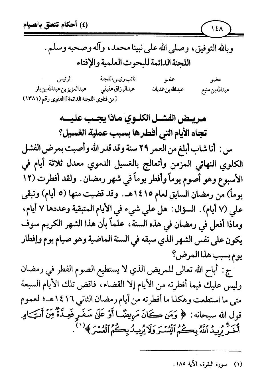 مريض الفشل الكلوي ماذا يجب عليه تجاه الأيام التي أفطرها بسبب عملية الغسيل؟