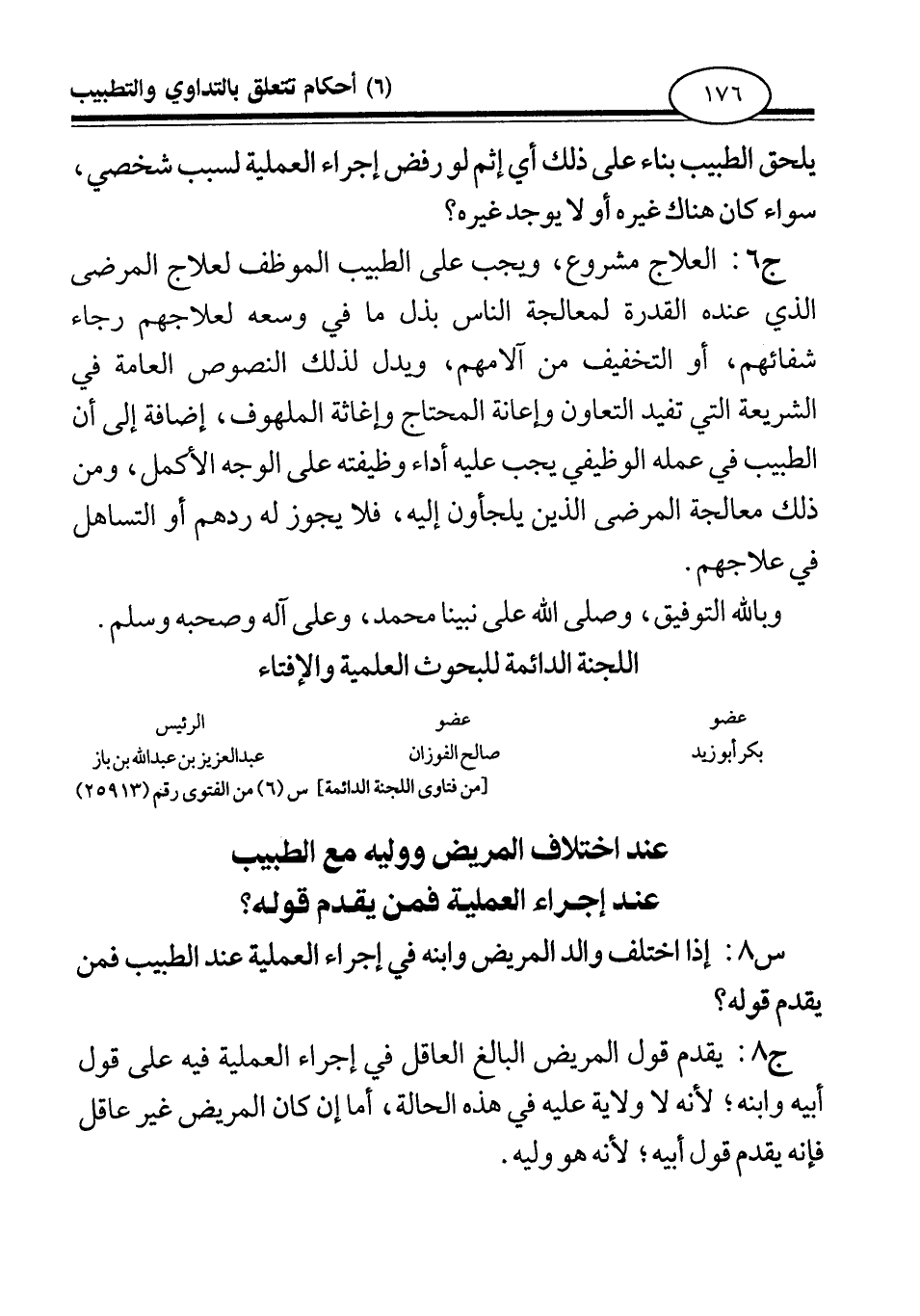 س 8: إذا اختلف المريض وابنه في إجراء العملية عند الطبيب فمن يقدم قوله؟