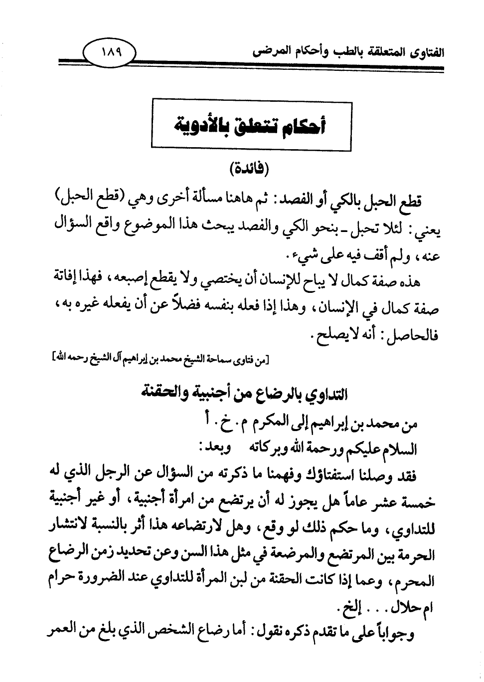 فقد وصلنا استفتاؤك وفهمنا ما ذكرته من السؤال عن الرجل الذي له خمسة عشر عاما هل يجوز له أن يرتضع من امرأة أجنبية، أو غير أجنبية للتداوي، وما حكم ذلك لو وقع، وهل لارتضاعه هذا أثر بالنسبة لانتشار الحرمة بين المرتضع والمرضعة في مثل هذا السن، وعن تحديد زمن الرضاع المحرم، وعما إذا كانت الحقنة من لبن المرأة للتداوي عند الضرورة حرام أم حلال. . . إلخ.