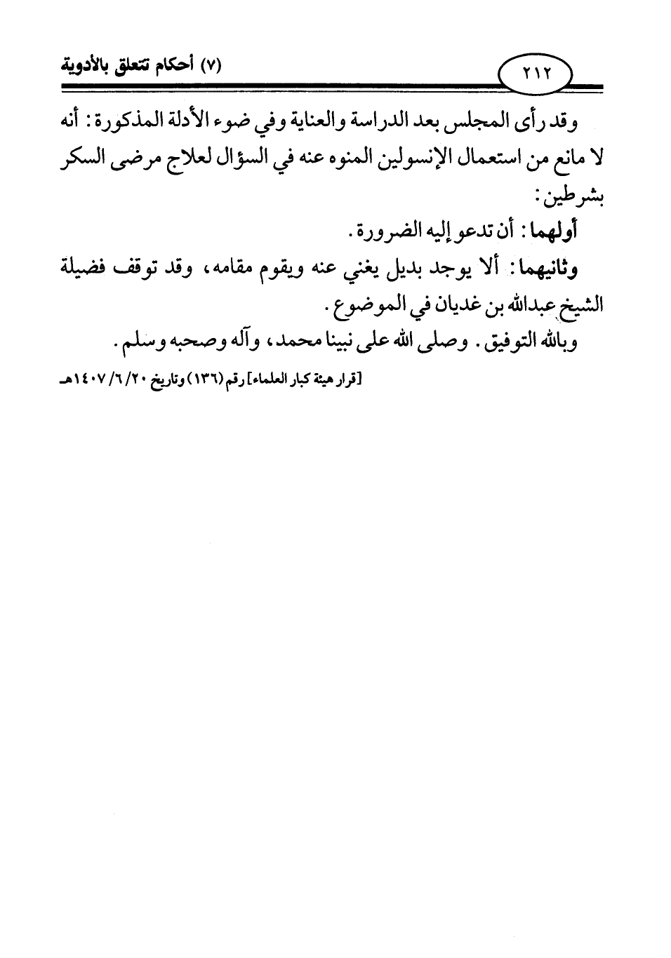 [قرار هيئة كبار العلماء] رقم (136) وتاريخ 20 6 1407 هـ.