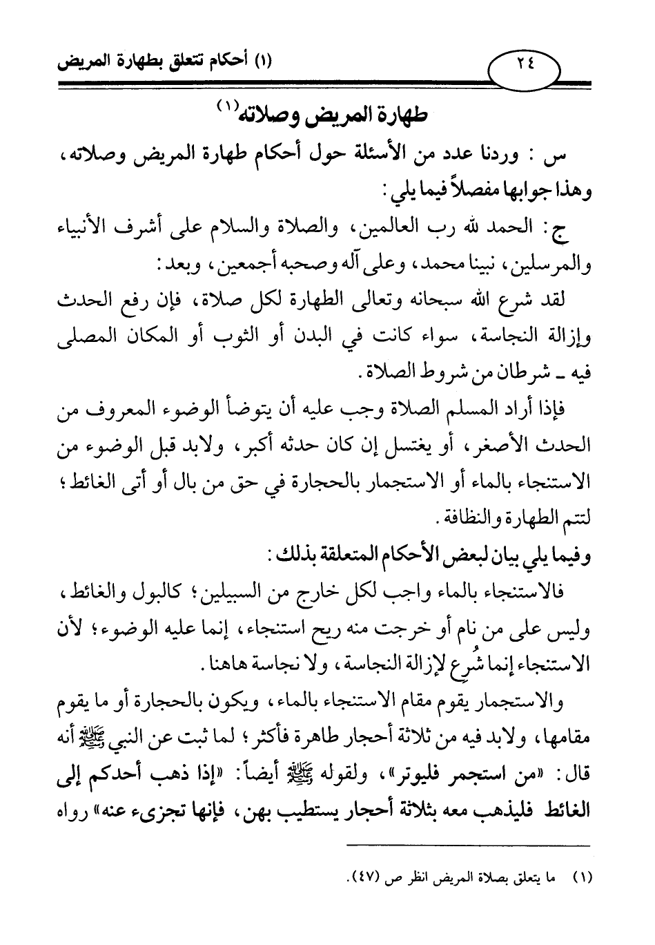 (¬1) ما يتعلق بصلاة المريض، انظر ص47.