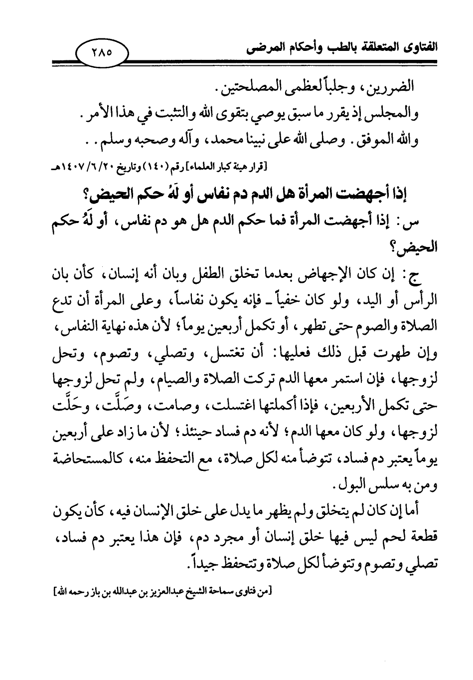 [قرار هيئة كبار العلماء] رقم (140) وتاريخ 20 \ 6 \ 1407 هـ