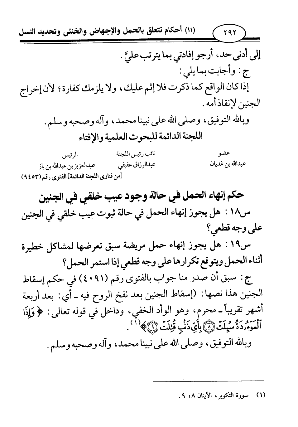 س 18: هل يجوز إنهاء الحمل في حالة ثبوت عيب خلقي في الجنين على وجه قطعي؟