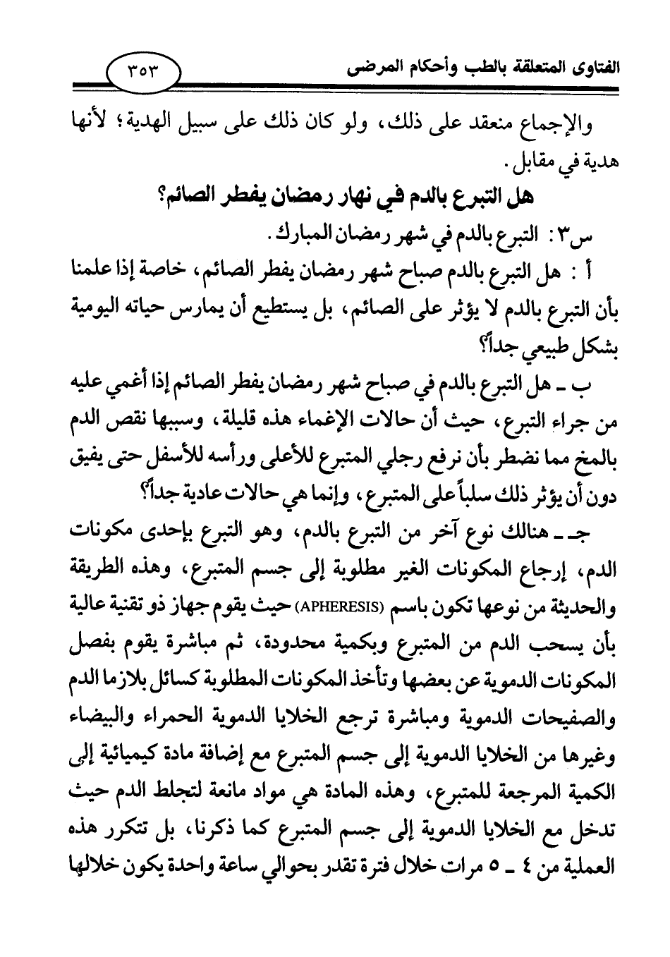 س 3: التبرع بالدم في شهر رمضان المبارك.