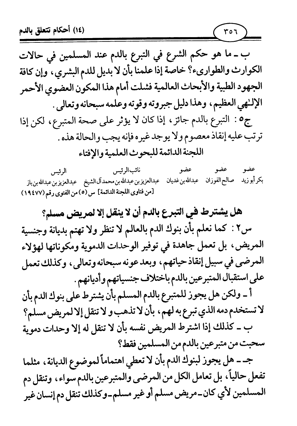 أ - ولكن هل يجوز للمتبرع بالدم المسلم بأن يشترط على بنوك الدم بأن لا تستخدم دمه الذي تبرع به لهم، بأن لا تذهب ولا تنقل إلا لمريض مسلم؟