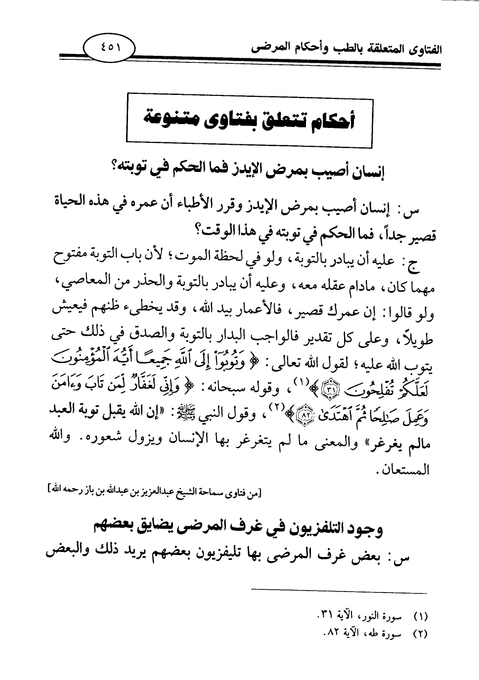 س: بعض غرف المرضى بها تلفزيون، بعضهم يريد ذلك والبعض