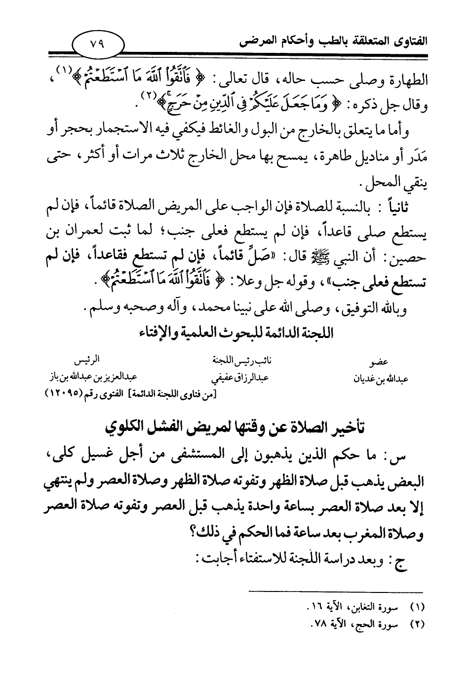 تأخير الصلاة عن وقتها لمريض الفشل الكلوي
